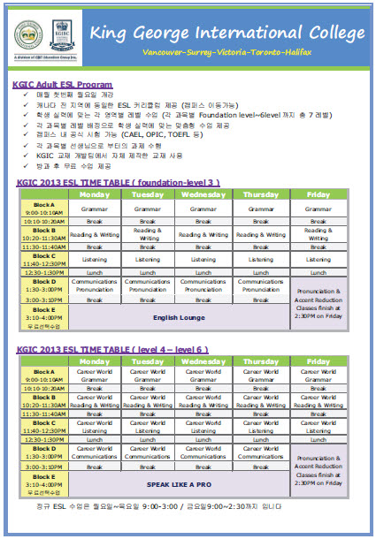 - ÇÁ·Î±×·¥: ESL, IELTS, TOEFL, Cambridge FCE,English language Experience Program, Power speaking and Modern Media, Business English, Pathway